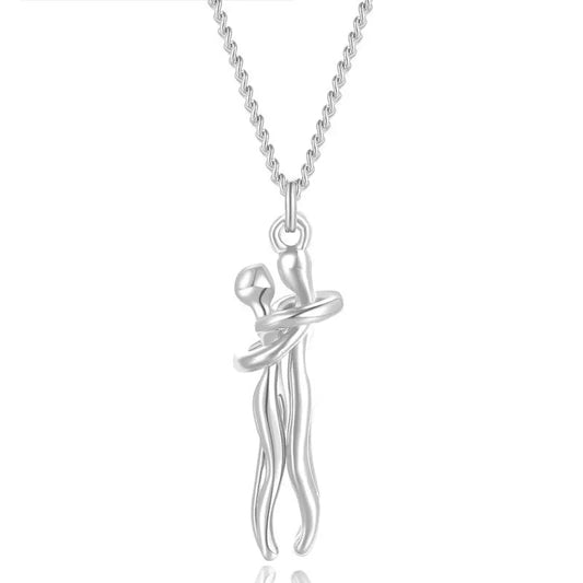 AUSHC - 1 Piece Simple Lovers Hug Necklace Personality Creative Titanium Steel Embracing Necklace Fashion Couple Chain Necklace Pendant