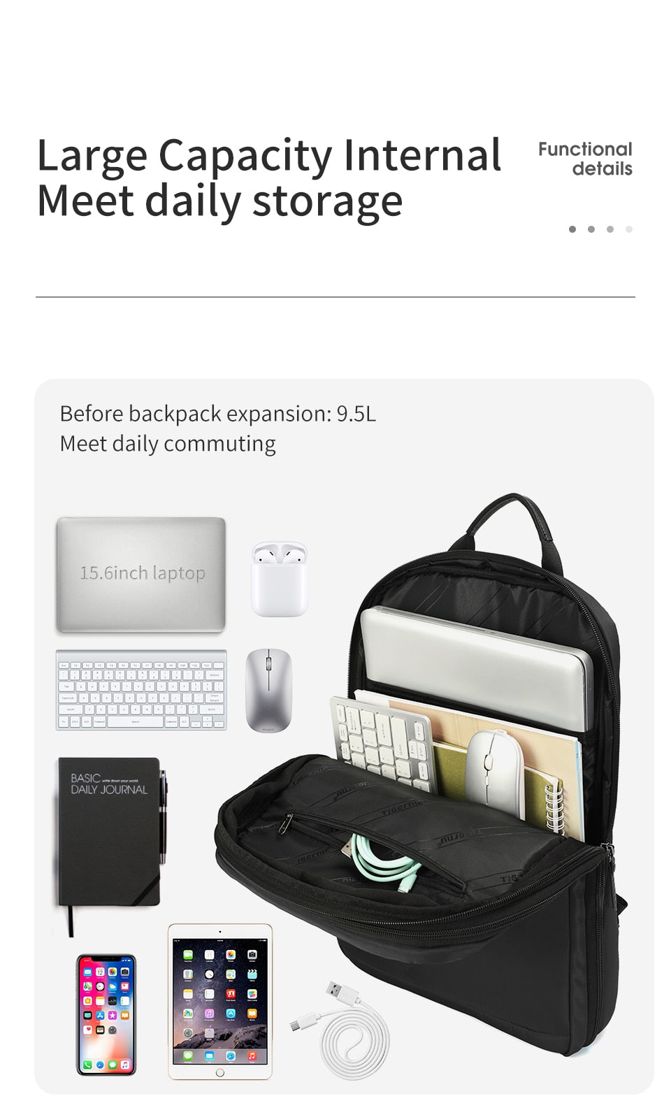 Slim and lightweight, this backpack is an ideal travel companion, making your trips more convenient and enjoyable.
